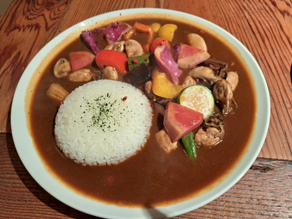 Tada~ ! Krista choose their special curry(1,100yen). Many oysters inside of this curry with fresh vegetables. Vegetable are carefully selected from farmers. Vege are also very tasty. Big eater like Krista, it is pretty filling menu. Oyster is very meaty and fresh.Highly recommended.