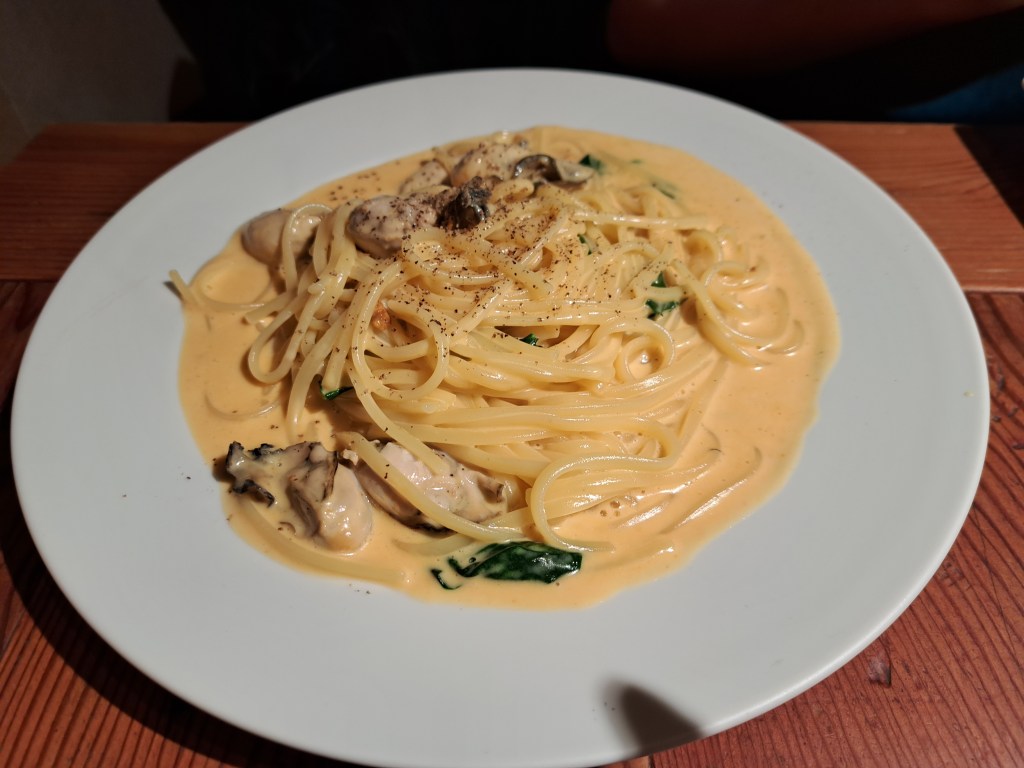 My friend ordered creme pasta with Oyster. Pasta creme sauce and Oyster are well matched. Go good with white wine!