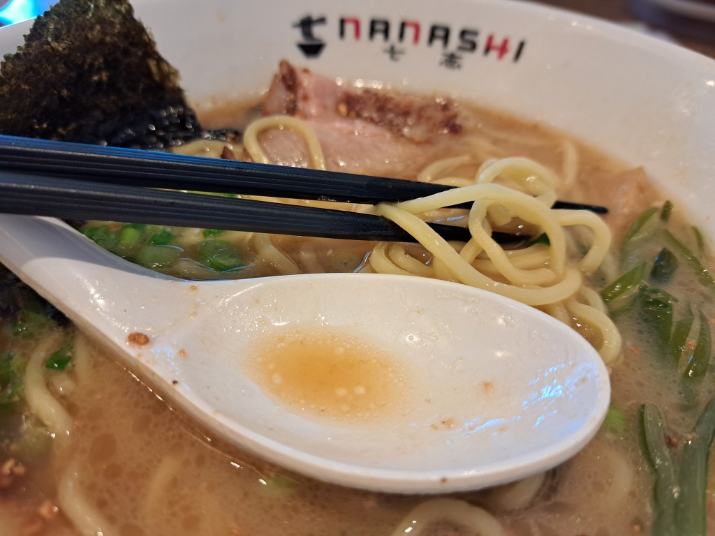 Ramen in Nanashi is perfect. Their soup taste is unforgettable. And if you go alone, friendly staff welcomes you so we don’t need to be shy to go alnoe even you are women.