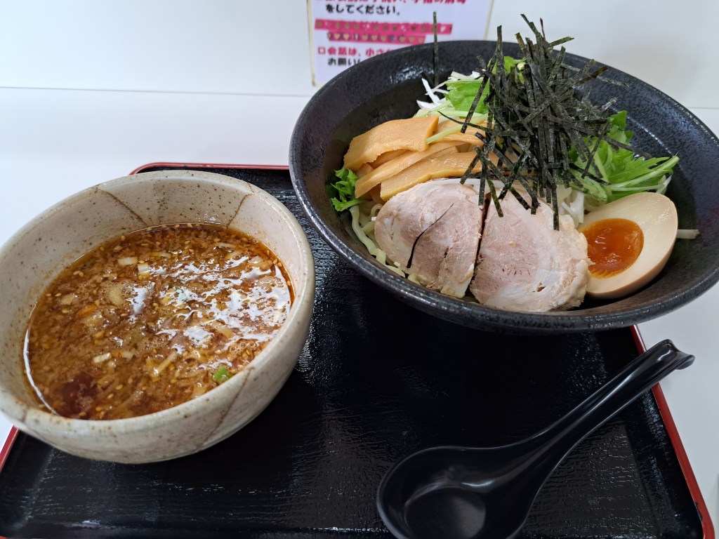 Menya-Kobayashi has of course standard ramen menu such as Syoyu ramen (Noodle in soysauce taste soup) but many unique soup for attracting customers. I ordered ” Tsuke men Aka Oni (Dipped noodle ” Red Demon” 900yen). Since soup name is named ” Red Demon”, I can imagine how hot (spicy) soup is.. but I am spicy lover. I could enjoy this dip soup. The soup is not only spicy but also tasty!(Yummy!) Noodle is very chewy. This soup and noodle , great combination ! 100 marks! lol.