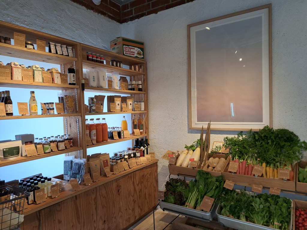 Micoto-ya selected vegetables are lively displayed in the shop. And we can find sauces/cooking ingredients , too. Of course all are naturally made.