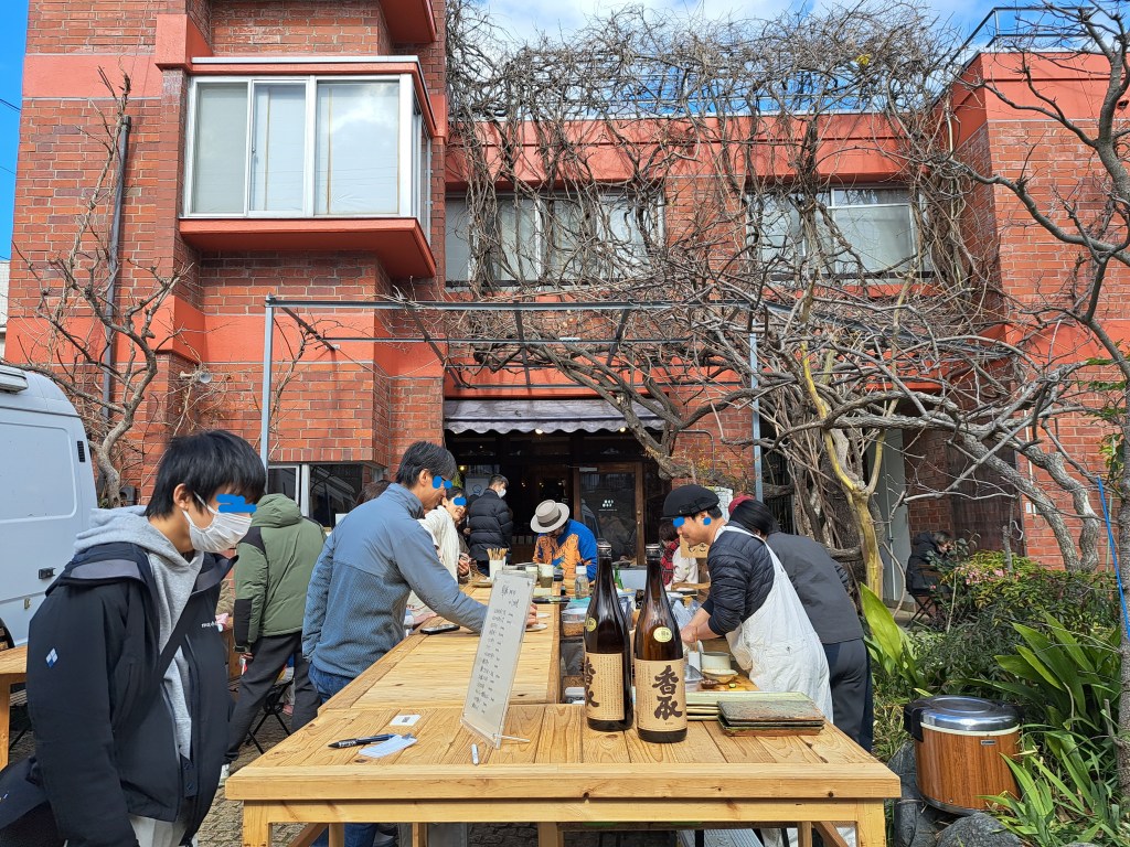 Micoto-ya helds unique event regulary in their garden area. One day, a famous chef in downtown Tokyo was invited to open “mini” sushi restaurant there for a few days. A lot of interesting ideas in Micoto-ya owner who wears a ” hat “.